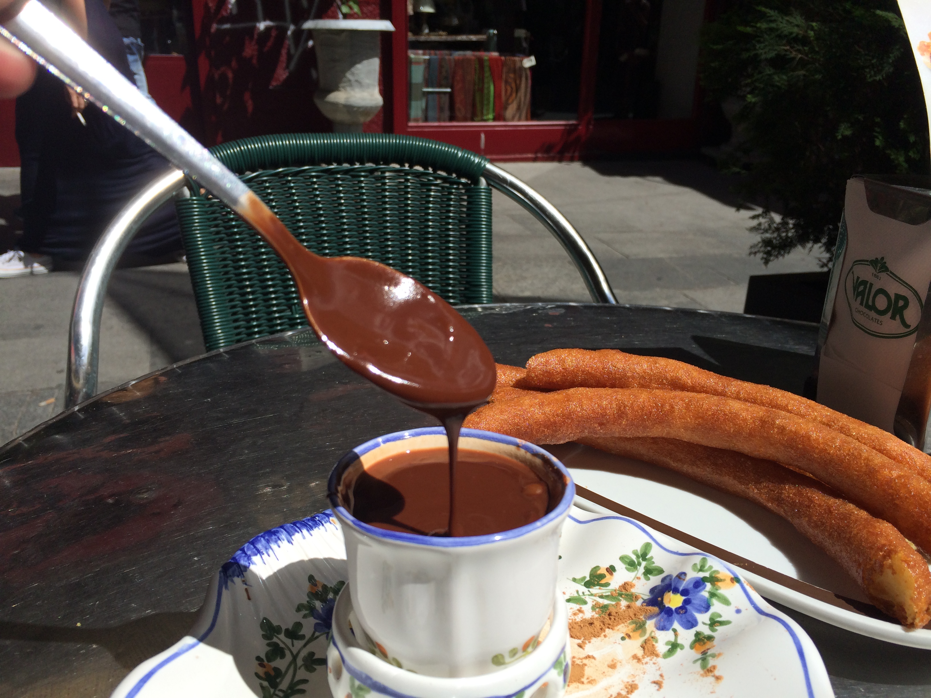 Churros – the most delicious food that has ever existed. You dip them in liquid chocolate.